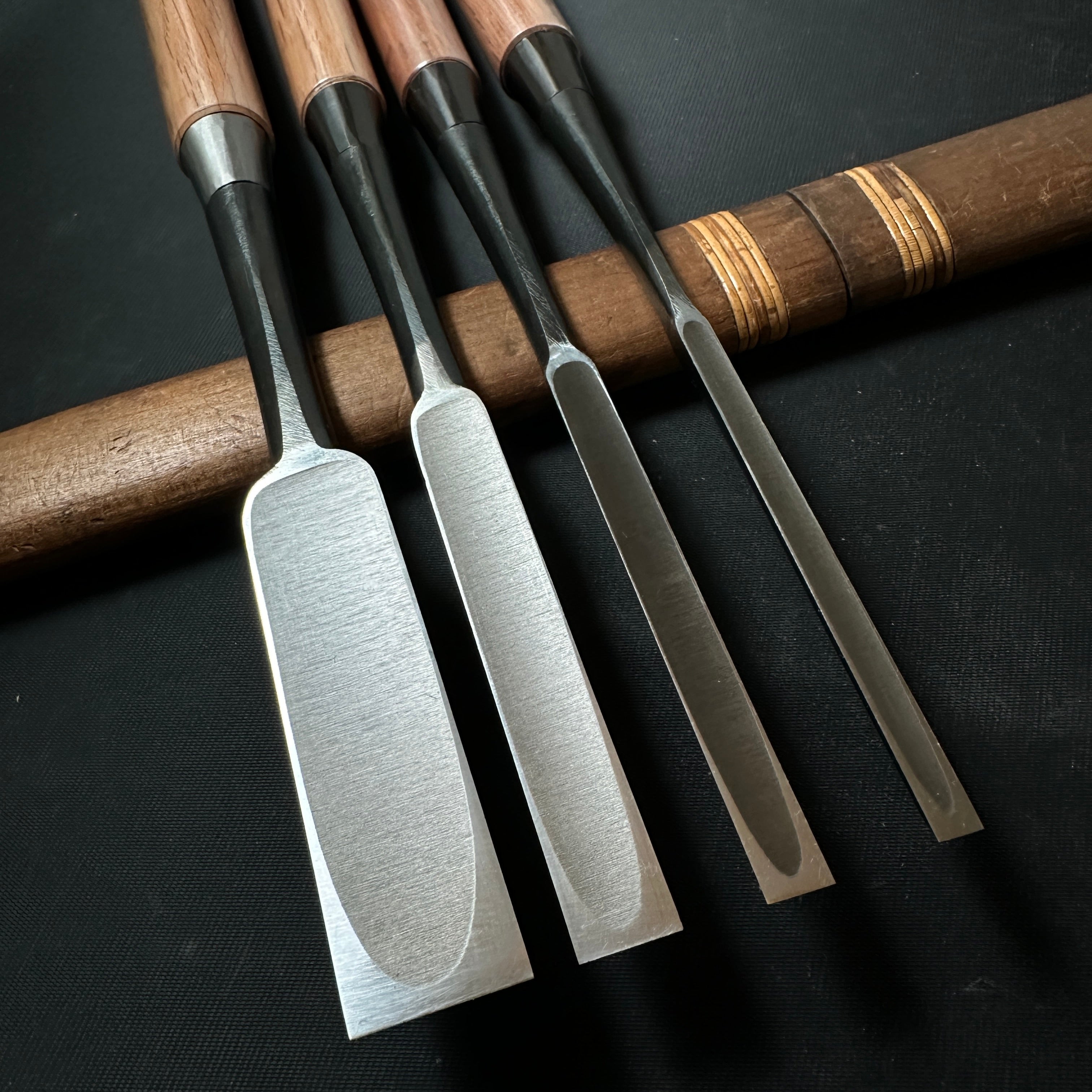 Old stock Tasai Dovetail Paring chisels (Usunomi) with blue steel 掘出し物 田斎作 鎬薄鑿