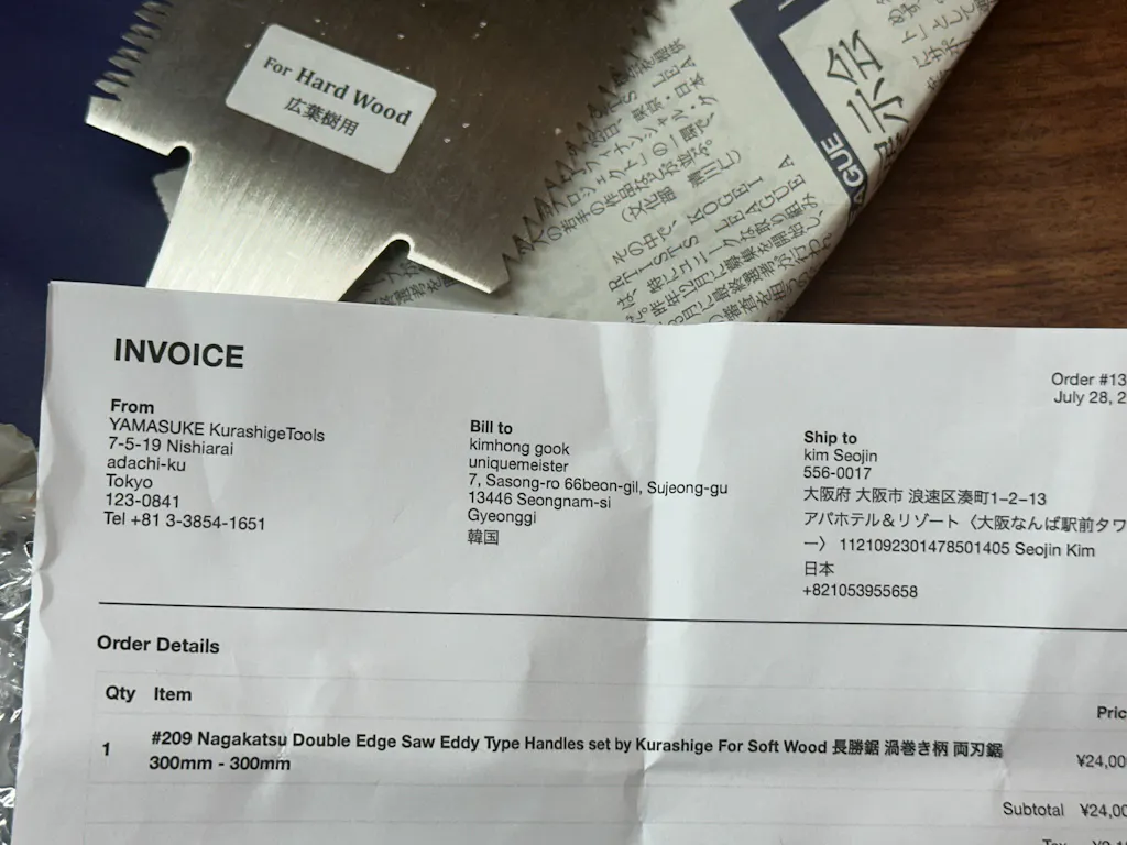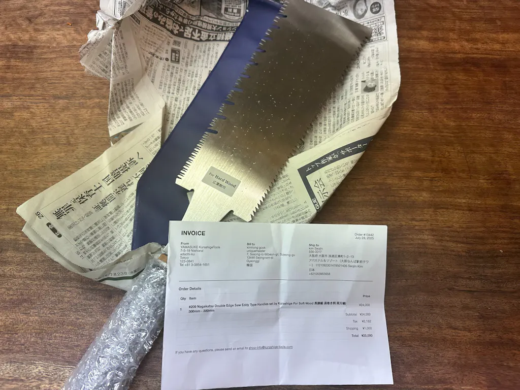 #209 Nagakatsu Double Edge Saw Eddy Type Handles set by Kurashige For Soft Wood 長勝鋸 渦巻き柄 両刃鋸 300mm