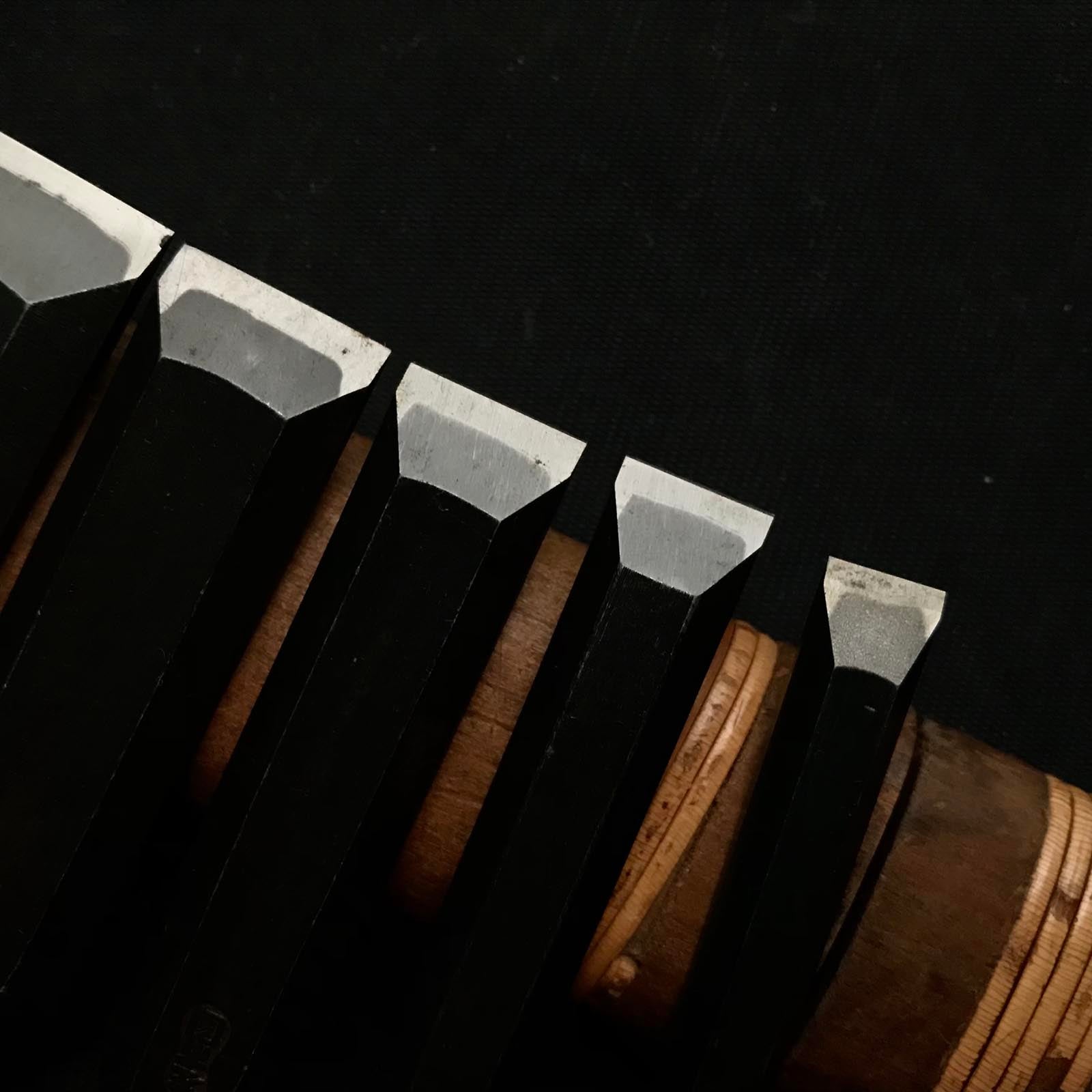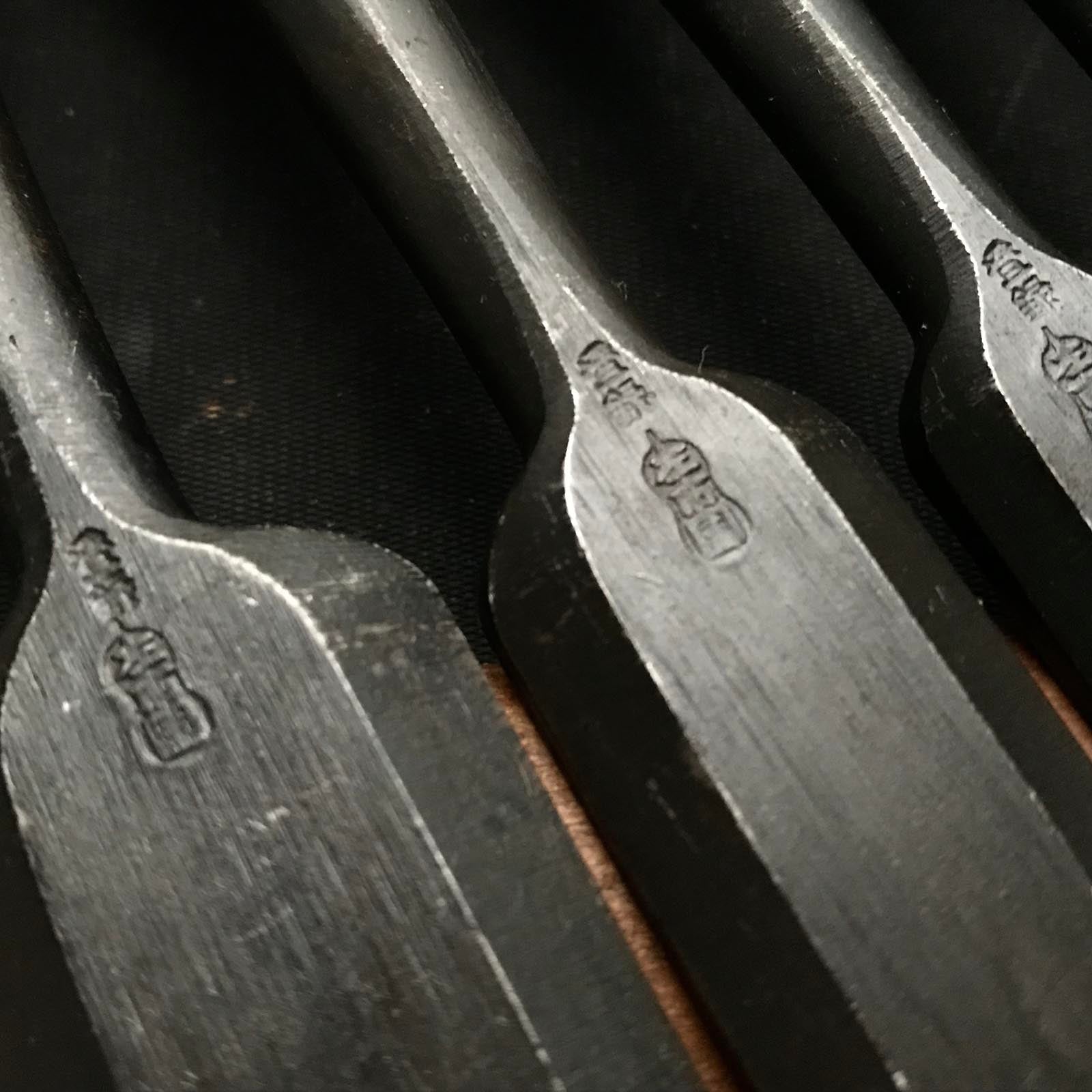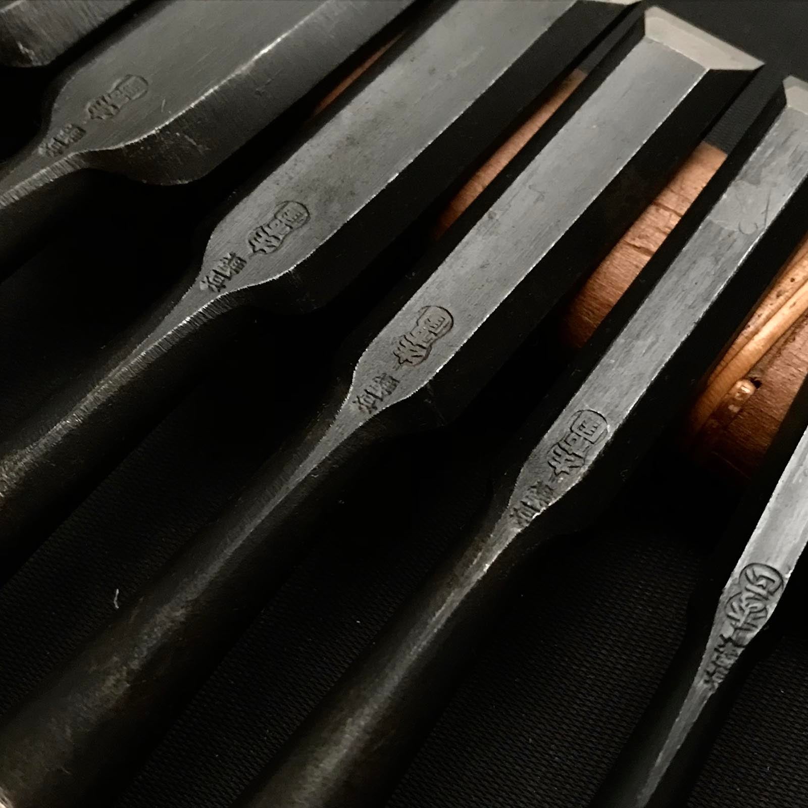 Old stock Hidari-Ichikuni Bench chisels set 掘出し物 左市國 追入6本組鑿 紫檀柄 Oirenomi