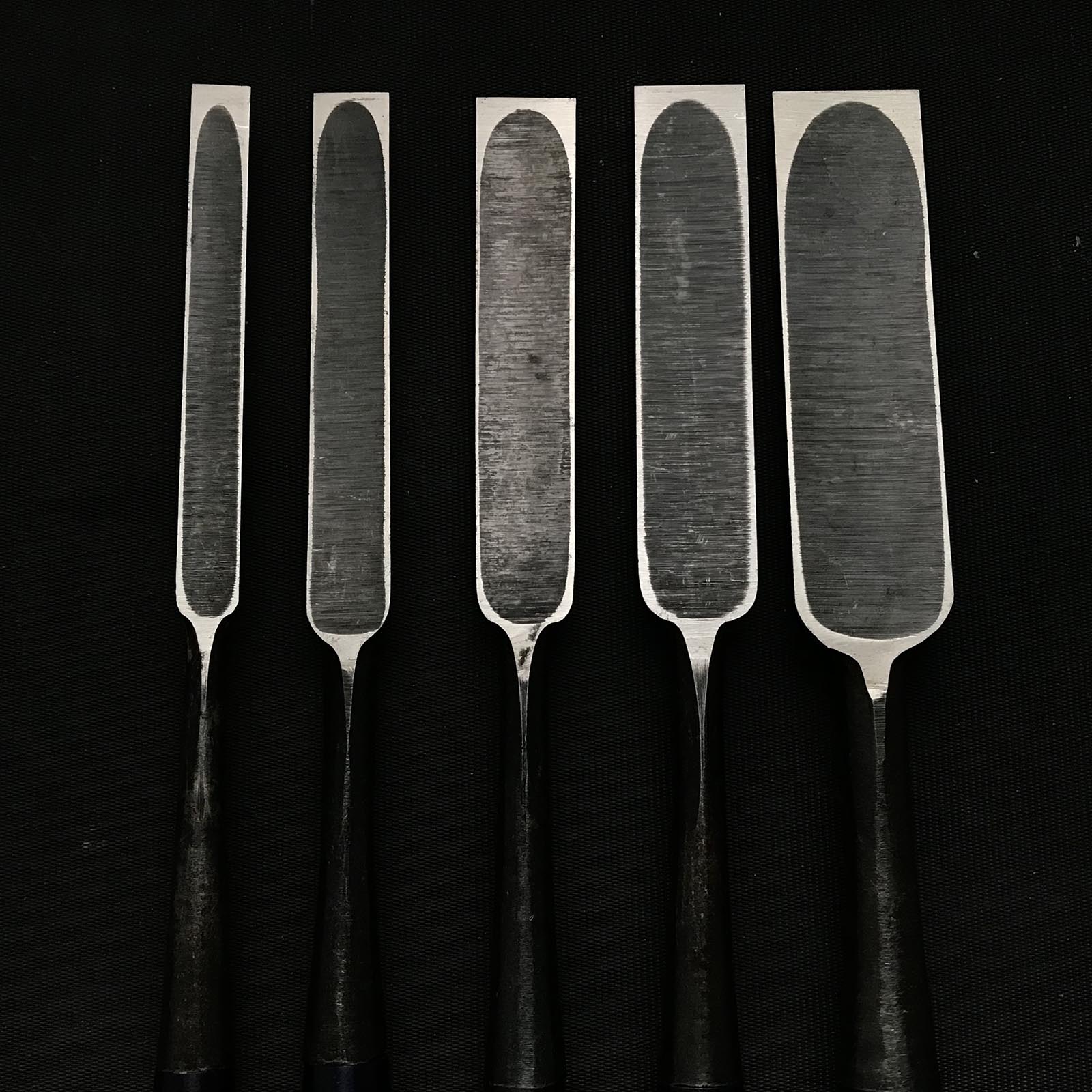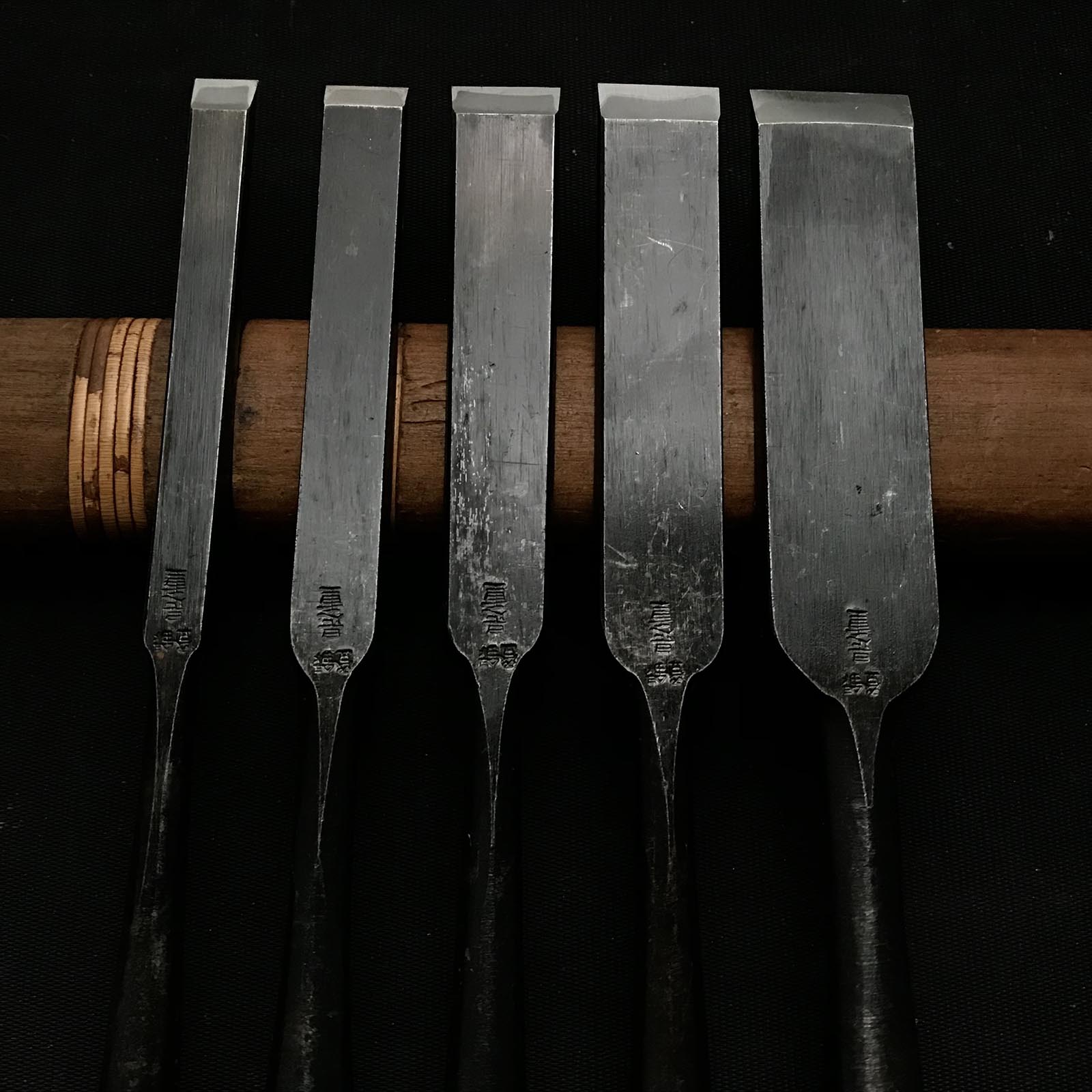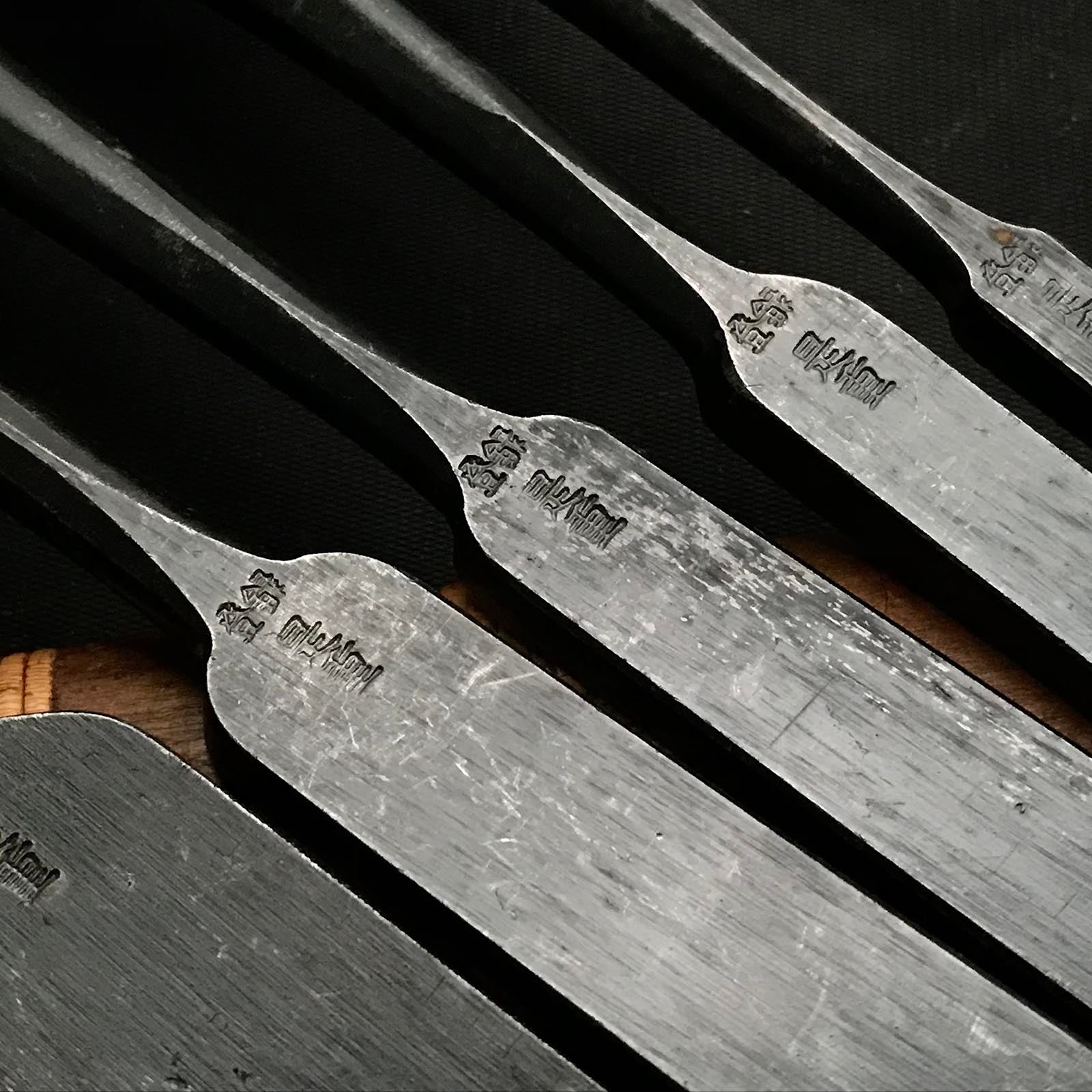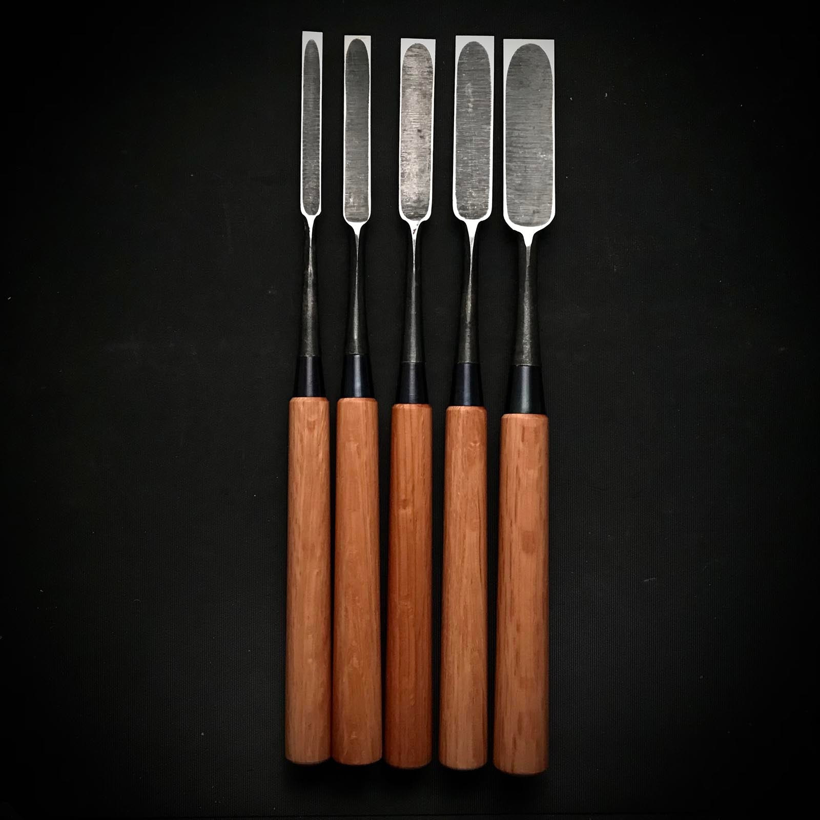 Old stock Koreshige Paring chisels (Usunomi) with white steel 掘出し物 是重 角打薄鑿 9,12,15,18,24mm