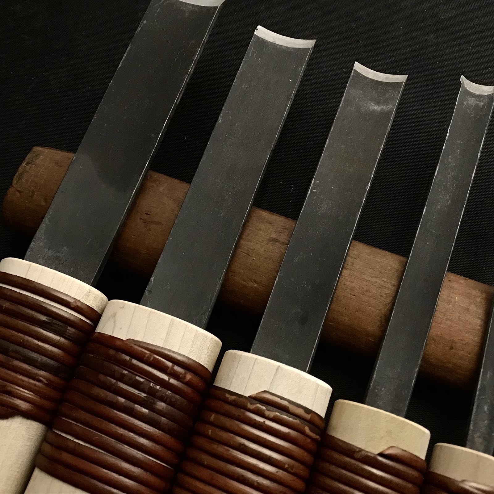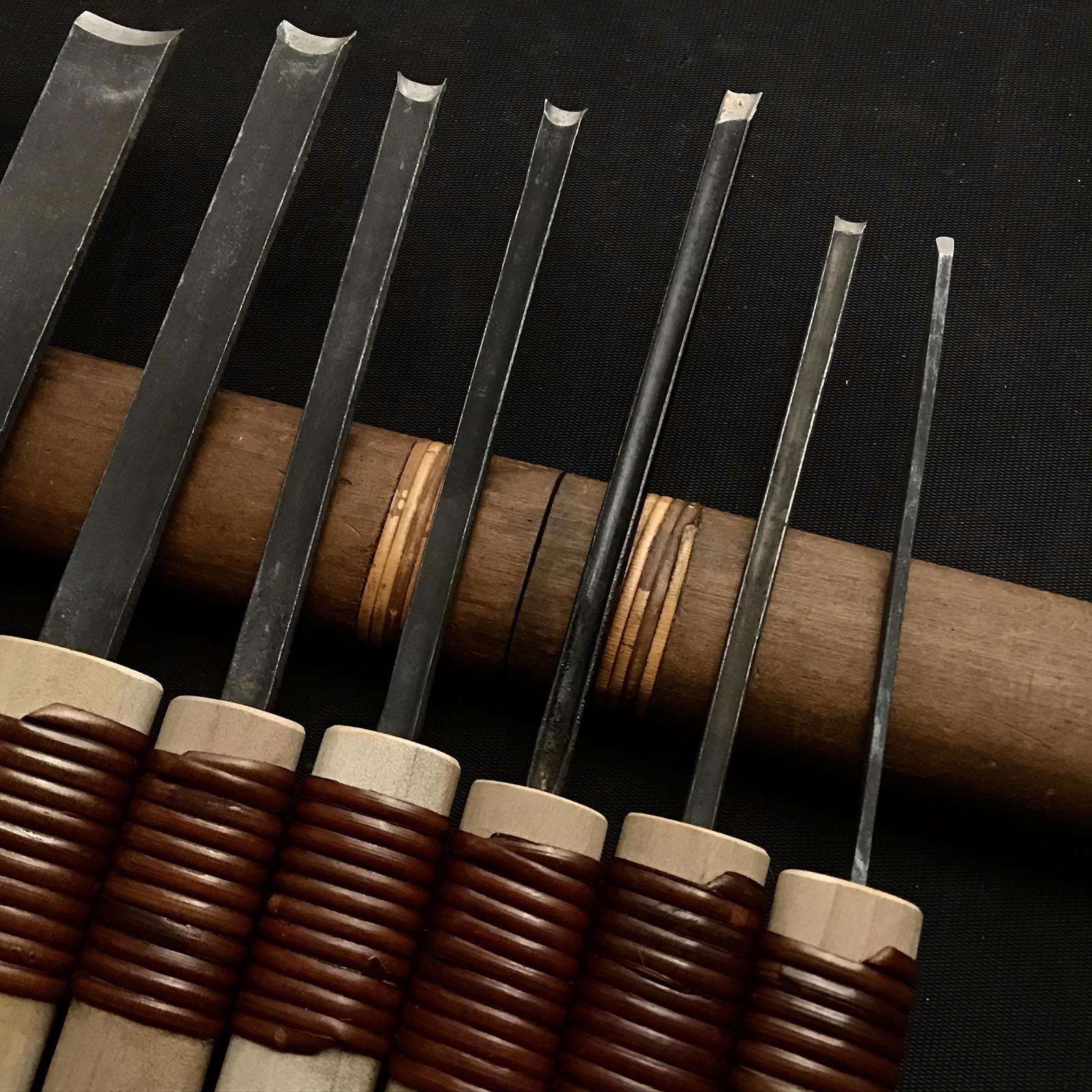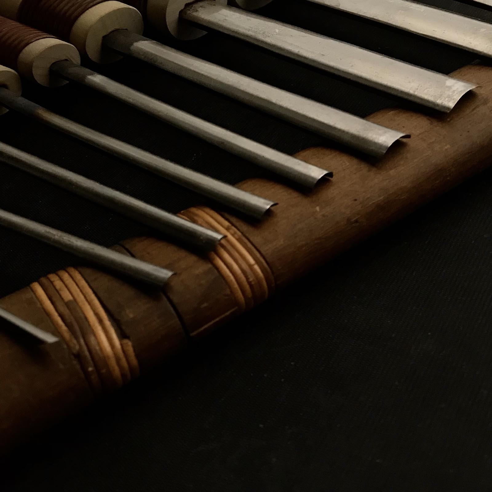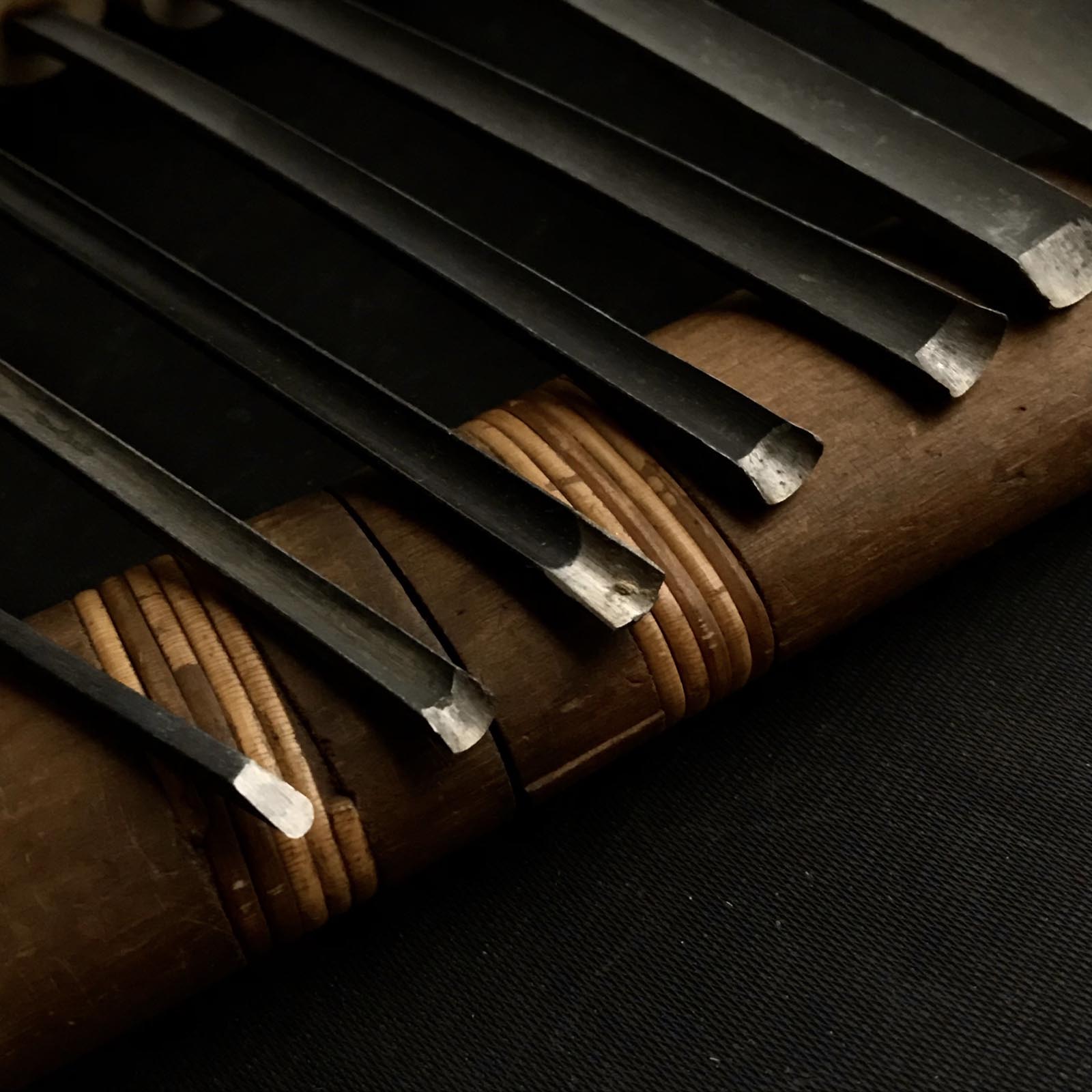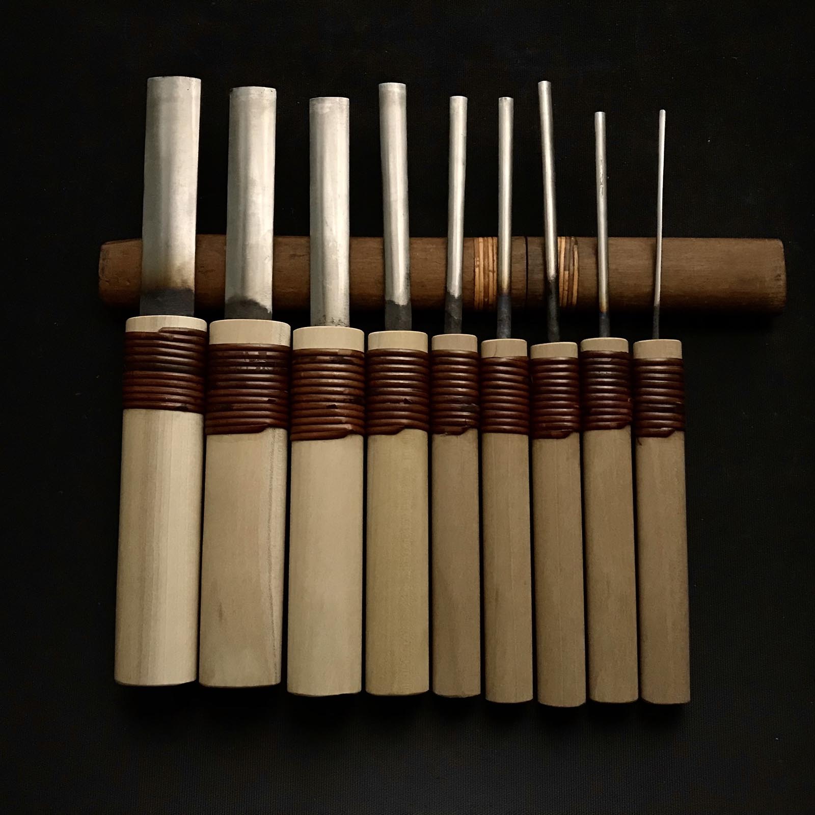 Old stock Sotomaru-Nomi Gouge Chisels set with Blue steel 掘出し物 外丸彫刻刀9本組 青紙鋼